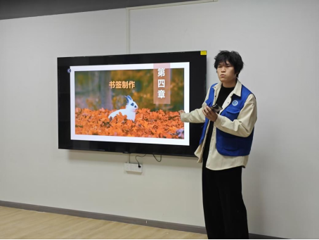 手工环节成为活动高潮。志愿者有序分发剪刀、卡纸、彩笔等材料,详细示范书签制作步骤。孩子们立刻投入创作:有的将银杏叶拼成小金鱼,有的把枫叶叠成花朵,还有的在叶片旁写下名字准备送给家长。志愿者巡回指导,及时解决“叶片总掉”“胶带粘不牢”等问题。当独一无二的落叶书签完成,孩子们举着作品互相展示,脸上满是自豪。