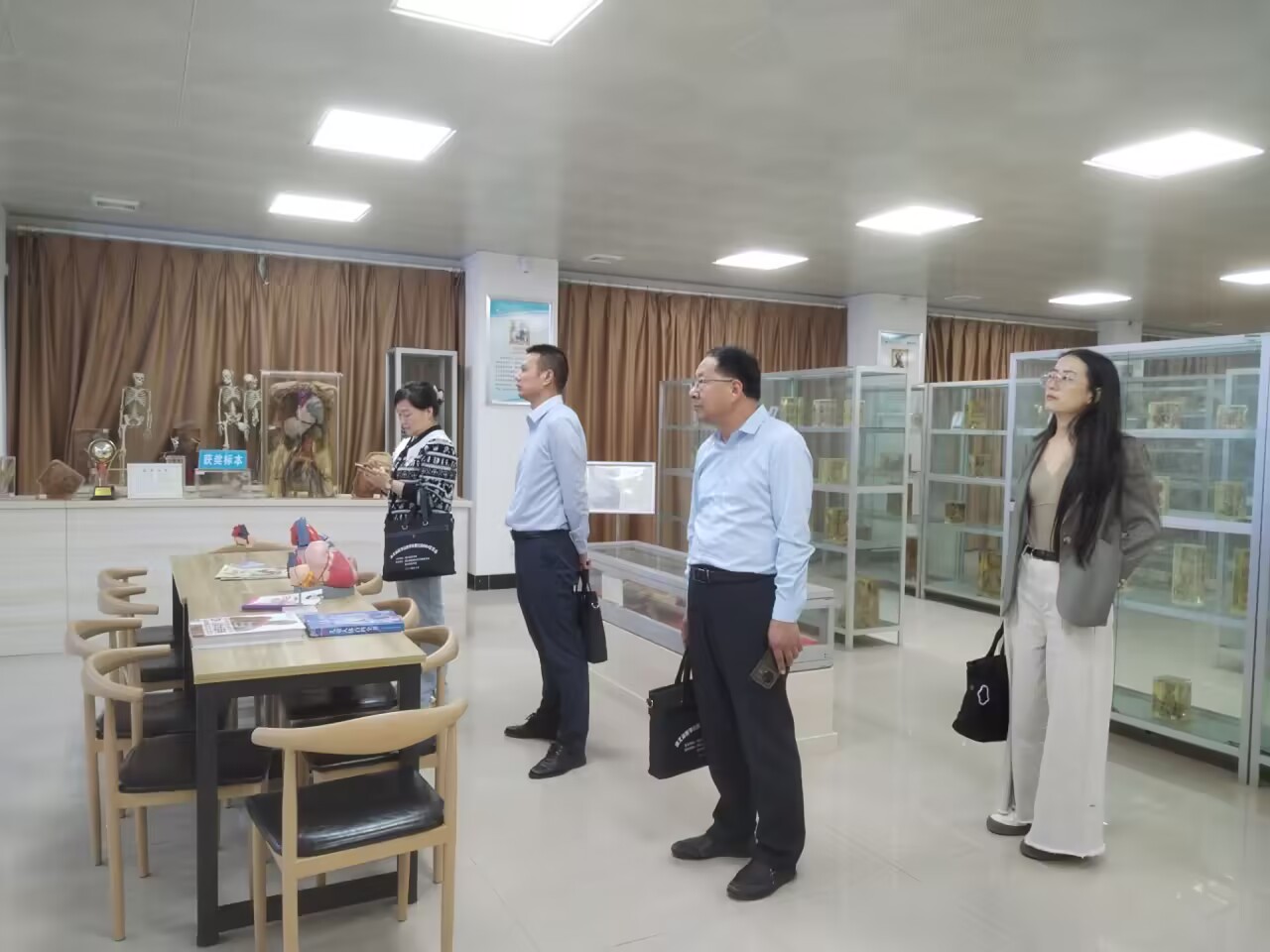 会上,williamhill中国蔡飞院长首先对湖北文理学院医学部领导一行表示欢迎,向来院领导介绍了williamhill中国的基本情况、人才培养、学科建设等情况,姜洪溪部长也介绍了湖北文理学院医学部相关情况。接着双方就党建、教学科研、质量工程建设、学科建设、产教融合等工作进行了细致全面的交流与探讨。座谈结束后,湖北文理学院医学部领导一行依次参观williamhill中国创新实验室、环境疾病与全健康校级重点实验室、全国样板党支部、湖北省级科普基地生命科学标本馆等。