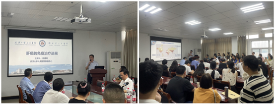 6月29日下午,徐细明教授为我院师生做了一场以“肝癌的免疫治疗进展”为主题的学术讲座。徐细明教授从中晚期肝癌免疫治疗进展、早期肝癌免疫治疗进展及团队科研交流三个方面为全院师生进行了深度阐述,让与会师生们了解到不同时期肝癌的免疫治疗进展。徐细明教授扎实沉稳的学术作风,深入浅出的独到见解,新颖深刻的经验分享,赢得了在场师生的热烈掌声。讲座结束后,徐细明教授热情地与师生们展开互动,并对提出的问题给予了详尽的解答。
