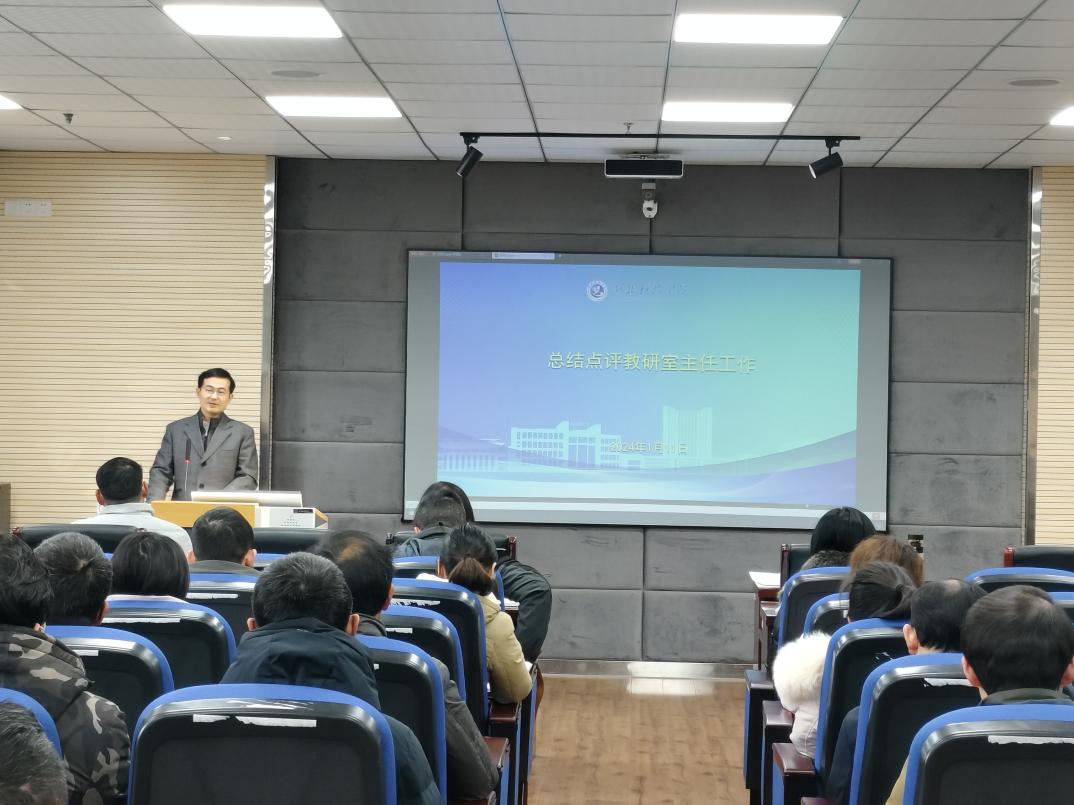 宋铁山、吴喆等十位教研室主任从思想政治、教学工作、科学研究、社会服务、人才培养等方面总结了各教研室2023年取得的突出工作成绩和存在不足,初步谋划了2024年发展性工作重点。院长蔡飞同志对教研室工作做了总结点评,他感谢各教研室一年来所付出的努力,并祝贺大家取得的成绩,同时就进一步做好教研室工作提出三点要求:一是要守规矩,坚守师德师风底线,坚持科研诚信,遵守规章制度;二是要重团结,注重加强科室内部、科室之间和科研团队的沟通交流和团结合作;三是要谋发展,在教学工作做优、科研工作做强、威廉希尔做实、社会服务做广等方面下功夫、出成绩。