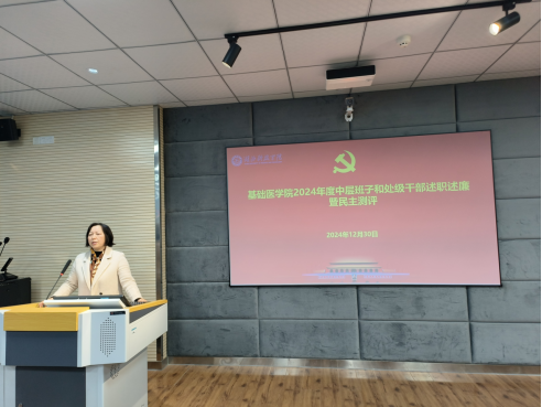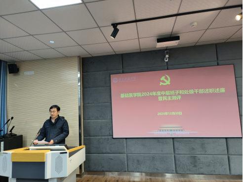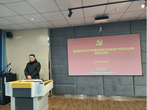 在大会上,蔡飞院长代表学院领导班子进行了述职述廉报告。学院4位领导班子成员依次就德、能、勤、绩、廉等方面,进行了2024年度的个人工作述职。