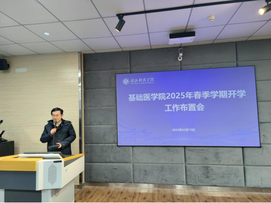 院长蔡飞在讲话中充分肯定了全体教职工在2024年工作中付出的努力和取得的成绩。他指出,随着人工智能等新技术的快速发展,医学教育面临着新的机遇和挑战。他强调,要始终把安全放在首位,守住政治安全、人身安全等底线。要认真学习制度文件,规范工作流程。要积极组织学生参加各类竞赛,提升学生实践能力。要充分发挥学院优势,加强人才培养,为学院发展注入新的活力。