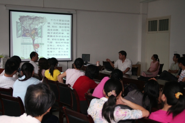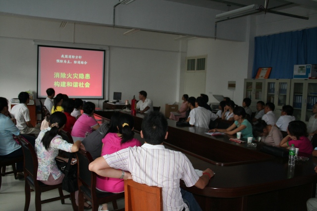 为了加强防火意识,我院于2008年9月24日聘请消防官兵在会议室举行消防意识讲座,与会的老师有各教研室实验室负责人。