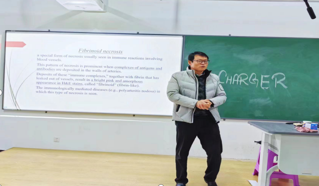 (通讯员:王全)2024年3月5日上午,病理学教研室老师们走进2021级留学生课堂聆听了一节病理学英文课(pathology class)。