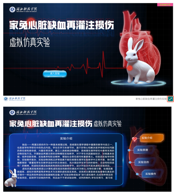 该项目以家兔心脏缺血再灌注损伤为背景,利用先进的虚拟现实技术,模拟了心肌缺血再灌注损伤的实验过程。实验者可以通过虚拟仿真平台,身临其境地体验实验过程,观察家兔心脏在不同缺血阶段的变化,深入了解心肌缺血再灌注损伤的病理生理学机制。这一创新性的实验方法不仅提高了实验的安全性和可操作性,也极大地激发了学生的学习兴趣和探索精神。
