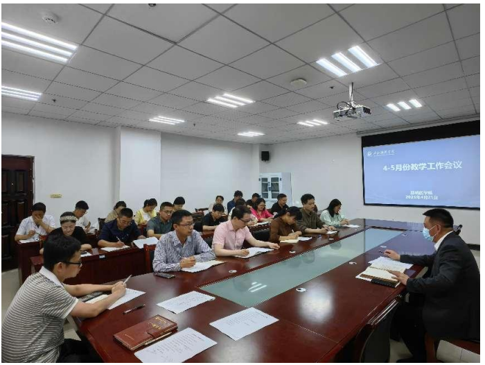 首先,蒋汝刚副院长传达了学校4 月教学工作会议精神,并紧密结合学院实际,对近期的重点教学工作做出详细部署。其一,推进教学公开课与月考工作,通过公开课促进教师间的教学经验交流,以月考检验学生阶段性学习成果;其二,聚焦课程建设与各级各类教学竞赛,鼓励各教研室整合优势资源,积极探索交叉学科课程建设,推动课程体系创新;其三,做好大创项目申报与教研项目结题工作,激发学生创新实践能力,确保教研项目高质量完成。他强调,课程建设作为人才培养的关键核心,各教研室应充分发挥主观能动性,整合各方资源,打造具有特色的交叉学科课程。在时代快速发展的背景下,高校教育教学面临诸多变革,青年教师青年教师要有久久为功的精神,积极申报各级教学成果奖、踊跃参加各类教学竞赛,不断提升教学水平。