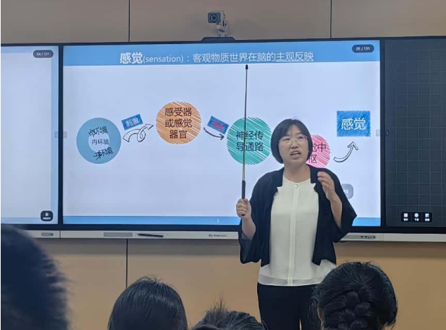 本次公开课由生理学教研室谢敏博士主讲,授课内容为《感觉概述》,谢老师通过问题导向式教学法引导学生逐步学习躯体和内脏感觉,通过对不同形式刺激的属性进行分析,结合自身的生活体验,讲解编码功能和适应现象,并巧妙融入“医者仁心”的课程思政元素。课堂氛围活跃,实时答题环节充分体现了“以学生为中心”的教学理念。