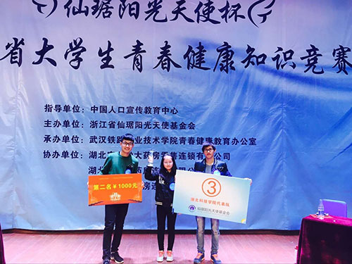 12月10日,由中国人口宣传教育中心指导、仙琚阳光天使基金会主办,武汉铁路职业技术学院青春健康教育办公室承办的“湖北省大学生青春健康知识竞赛”在汉举行。我校由williamhill中国王俊芳老师带队,刘育齐、佘露和邹议庆三名学生组成彩虹公益队获得第二名。