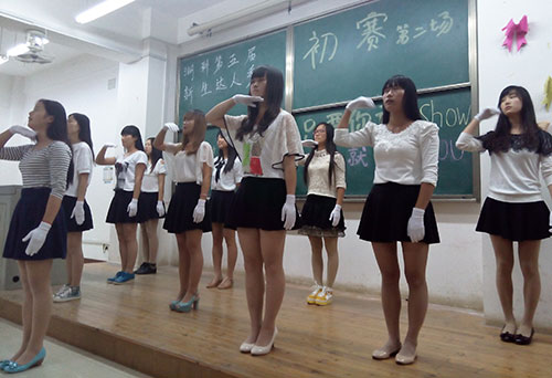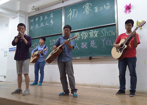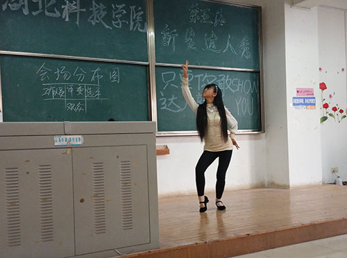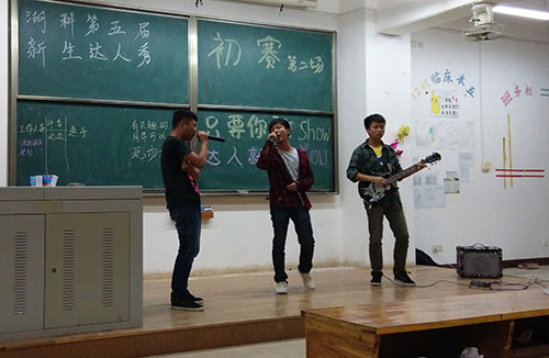 来自外国语学院的韩婷同学以一首新不了情震惊全场,让人热血沸腾之余,又体会到淡淡的哀愁与浓浓地相思。基础院杨松航同学的小品,幽默的语言中折射出对社会黑暗的讽刺,滑稽夸张的动作令人捧腹大笑。在歌唱类的表演中,一首首经典的老歌,不仅勾起了现场许多人的回忆,更引发了一波波的大合唱。为了进一步调动观众的积极性,发掘出更多身怀绝技的达人,现场还设置了现场报名的环节,为更多的人提供展现自我的舞台。