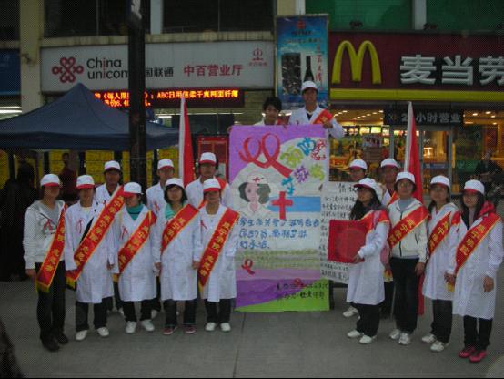 2010年12月1号晚7:00,由咸宁学院williamhill中国团委学生会主办及学校考评部协办的“世界艾滋病日”宣传活动在校西区温馨展开。学工处王孝才处长,吕仲茂副处长,徐扬科长,校团委马世玉书记,徐蕾副书记亲临现场,与williamhill中国的志愿者们一同进行“关爱艾滋病人”的相关宣传活动。