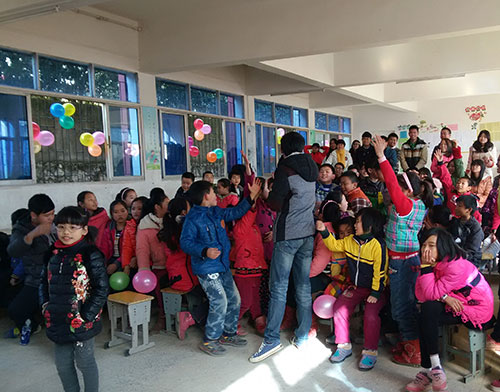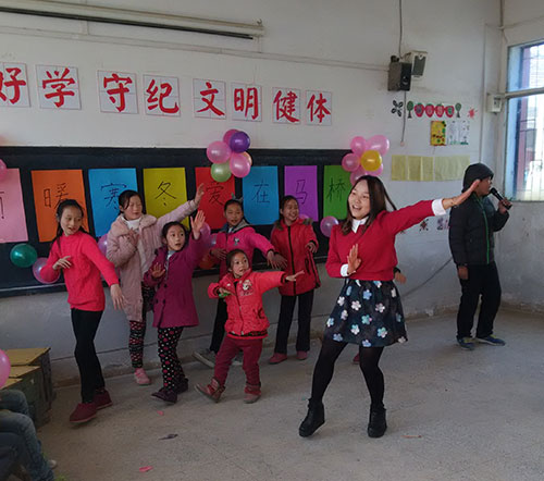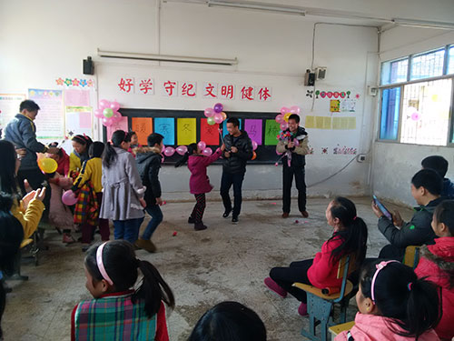两点钟的时候,教室里一切都准备就绪,首先是学生会干事和六年级小朋友共同演唱的歌曲串烧。小朋友们都非常积极,还主动出了好几个节目,有合唱、有拉丁。还有一个三年级的小朋友大胆地清唱了一段《荷塘月色》,之后还讲了一个故事,那稚嫩的童音仿佛打开了每个人的内心,脸上也满是温馨。游戏环节更是热闹非凡,小朋友们都争先恐后地举手参与,干事们带着他们玩得不亦乐乎。欢乐的笑声充满了整间教室,志愿者们带来的精彩节目也博得掌声阵阵。