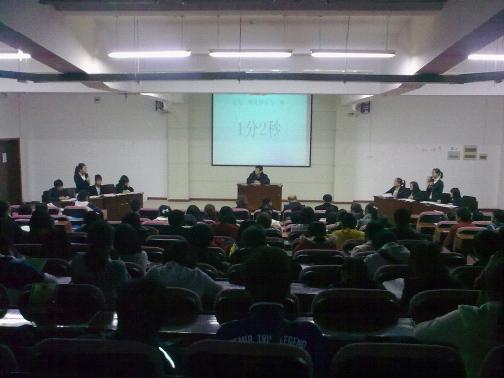 2010年12月5号晚7:30,由我校williamhill中国主办的第一届“北极星”杯辩论赛在教3-202成功举行。周文华老师,周立勇老师以及校级辩论赛最佳辩手郑宇昊同学担任此次比赛的评委,独家赞助商“北极星”饰品店的负责人应邀作为此次比赛的嘉宾。
