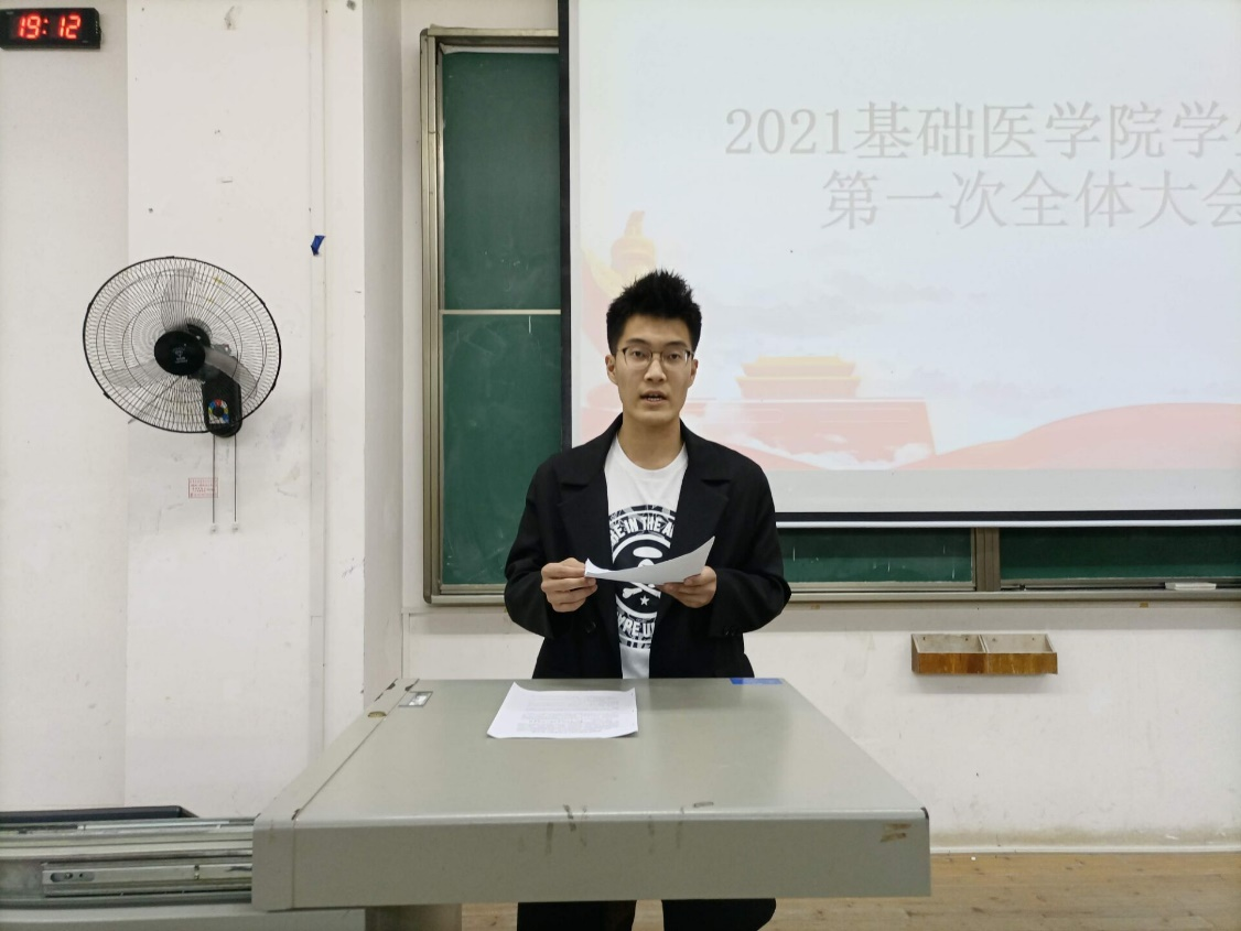 随后学生会主席沈桓宇上台发言,他以自己在学生会的工作经验为例,饱含激情的演讲,阐明学生会于每一位同学的意义及今后的责任,并建议同学们在工作中广交益友,收获成长,切莫沾染恶习。最后,沈桓宇同学将学生会所有成员应该秉持的品质总结为以下四句话:一是拥有不凑合,不推卸,认真完成工作的责任心;二是明白自己做的每一件事的意义,了解自己作为学生会成员的意义;三是坚持自己的初心与决心,对任何事保持最初的热情;四是对未来充满理想抱负,不甘于平庸的理想。此次大会在主席对新学期的工作动员与工作总结下圆满落下帷幕。