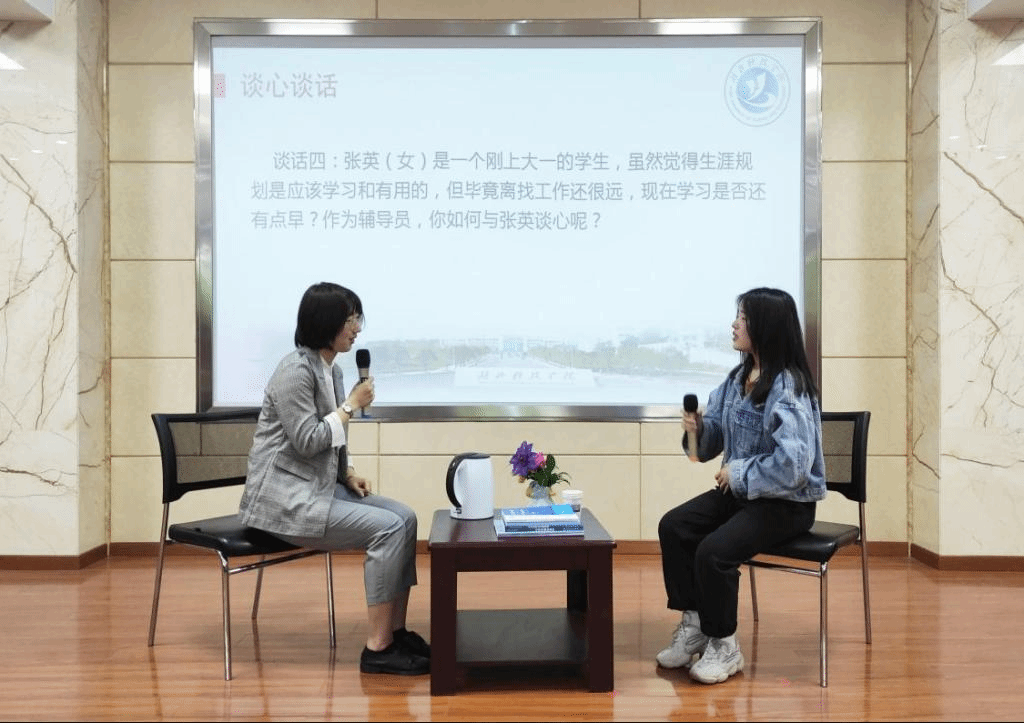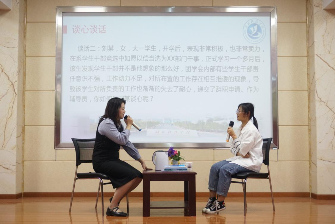 “案例分析”环节中选手们围绕案例中的党员学生缺乏政治意识、毕业生不能正常毕业、学生职业生涯意识薄弱,校园出现突发性危机事件等问题,从问题本质、解决思路及启示反思方面进行了全面阐述,从学生角度出发,解决实际问题。而在“谈心谈话”环节,针对学生提出的存在宿舍矛盾、缺乏专业兴趣、学习工作与生活失衡以及遇到情感等问题,选手们运用专业知识、结合自身工作经验,在交流谈话中循循善诱、对症下药,晓之以理、动之以情,帮助学生排忧解难。面对面的谈话让辅导员走进学生心里,成为知心朋友,心与心的交流彰显了他们落实立德树人的责任与担当,博得了在场观众们的称赞。
