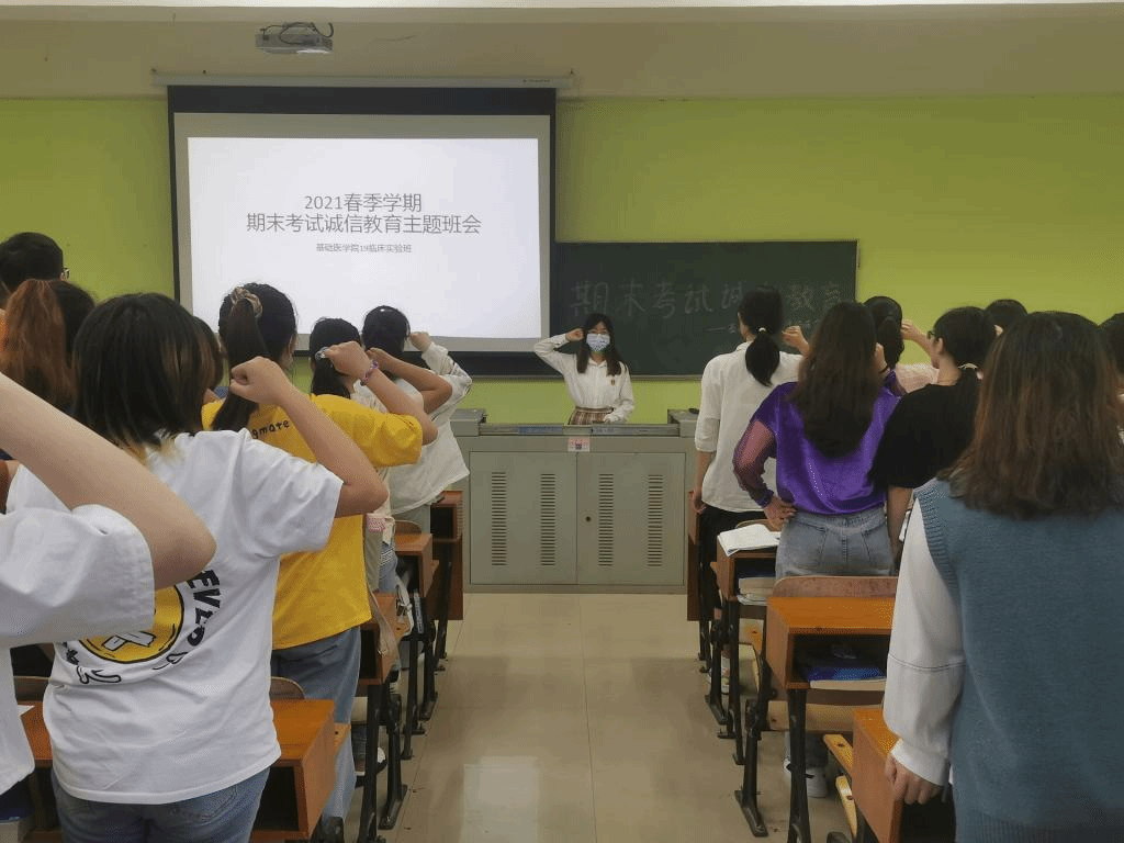 (通讯员:李菁琦)诚信是中华民族的传统美德,是每个人的立身之本,也是公民的基本道德要求之一。树道德之新风,立诚信之根基,更是当代大学生义不容辞的责任。而诚信考试是学生的基本行为规范,是大学生应具有的道德素质。为了认真落实学生诚信考试主题教育,加强学生诚信应考意识,我班于2021年6月20日在教学楼6-403开展2021春季学期期末考试诚信教育主题班会,全体同学积极参与本次活动。