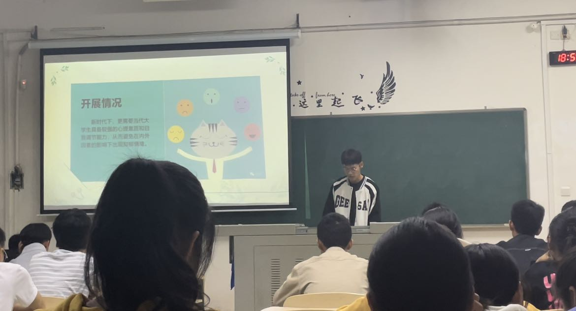 此次班会打破了传统的班会模式,采用“翻转班会”模式开展,学生根据新生适应、学习压力、情绪障碍、就业压力、心理健康的标准等多个不同主题展开。