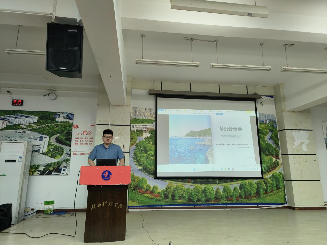 分享会上,各位优秀学子从自身考研经历出发,围绕院校和专业选择、备考规划、学习方法、心态调整等方面展开,向同学们分享了考研经验,强调备战考研要夯实专业基础、提高政治素养和丰富英语阅读能力,并向同学们推荐了一些复习资料。他们指出考研的成功等于正确的方法加之不懈的努力,考研是一场持久战,学弟学妹们要在考研期间放松心态,学会调整心态,保持自己的节奏。他们清晰的条理,幽默的语言,带来的满满考研干货,赢得了同学们的热烈掌声。
