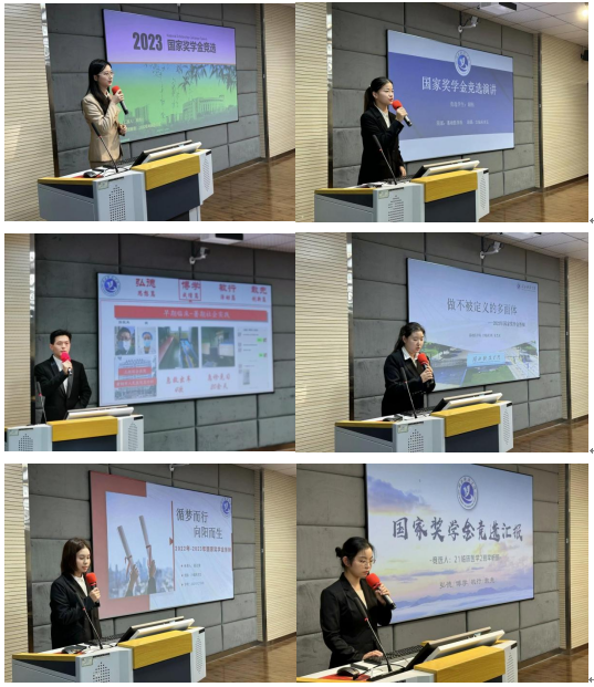 通过学生个人申请,院部评审,最终选出6名候选人。6位同学围绕个人在思想、学习、荣誉、社会实践等方面进行答辩,通过PPT展示了个人多方面的风采,获得了在场老师充分肯定。佘同辉在总结时强调,国家奖学金是对优秀学子们的最高肯定和奖励,相信此次参评的同学们能积极发挥榜样作用,激励同学们勤奋学习、全面发展,并告诉同学们大学的生活不仅仅只有学习,还有各类的社会实践和生活,希望同学们再接再厉,脚踏实地、不懈奋斗,成就更优秀的自己。
