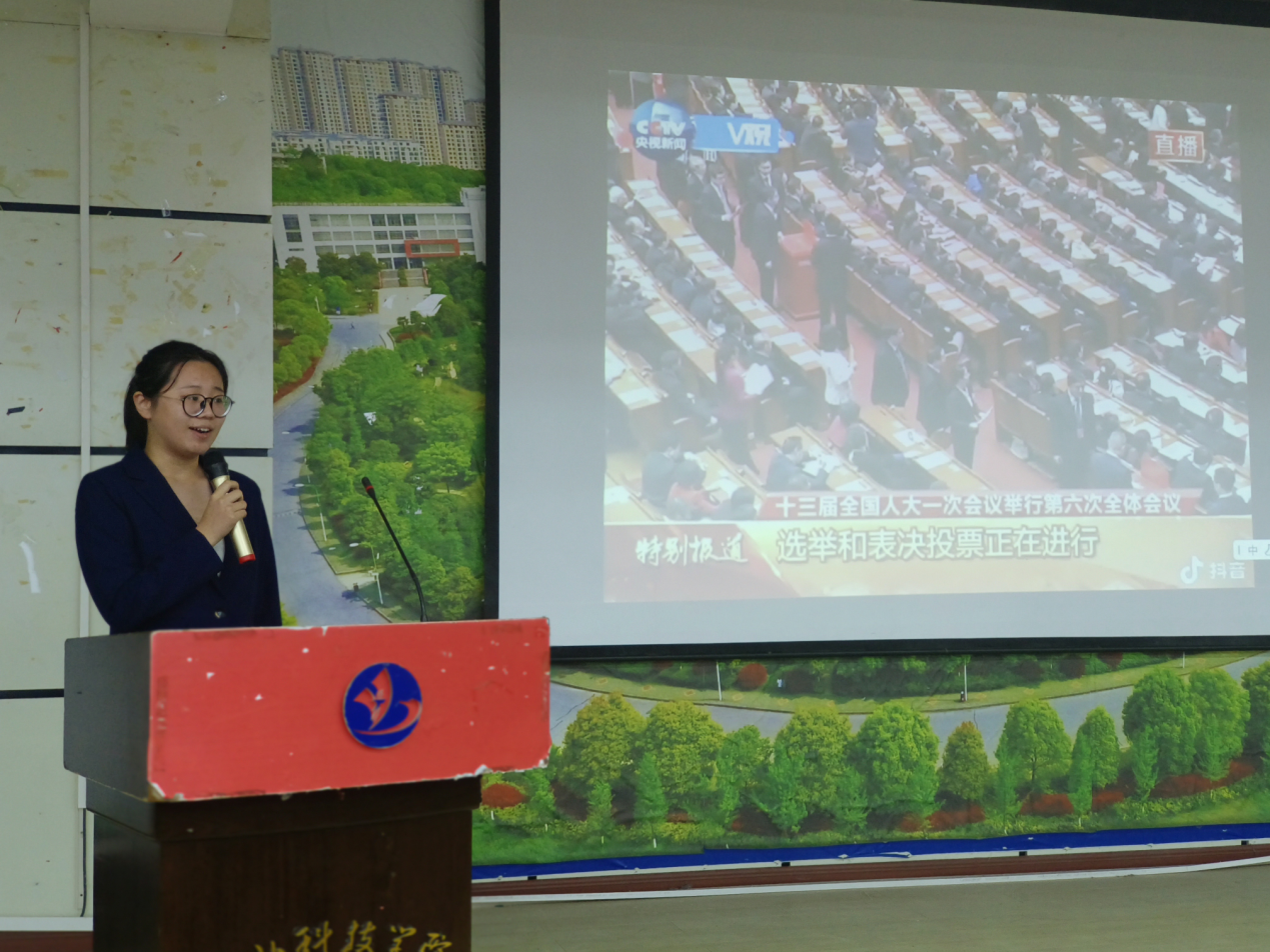 主讲人赵佳如以“豆里乾坤大”为主题,结合自己首次行使选举权与被选举权时的心情,亲身感受“全过程人民民主”的深刻意义。她还分享了习近平总书记在全国教育大会上的讲话,进一步表明了自己落实党的二十大精神的决心。