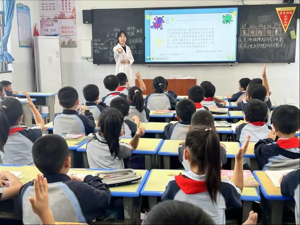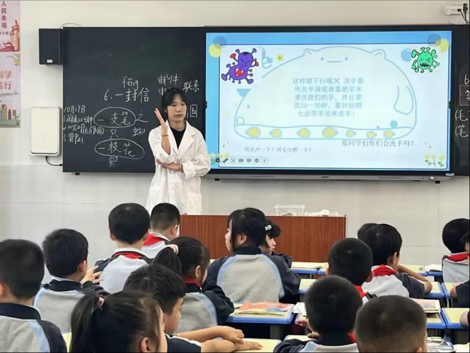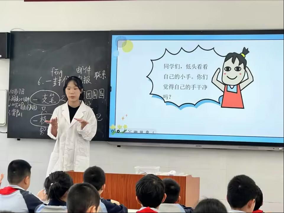 (通讯员:但新豪,审稿人:佘同辉)鲁迅先生曾说过:“无穷的远方,无数的人们,都与我有关。”这句话提醒着我们,要胸怀天下,关心民生。积极参加志愿服务活动,便是我们大学生投身社会,发光发热的绝佳舞台。2023年10月17日,williamhill中国在咸宁市泉都小学举行了“医学科普主题”活动。12名志愿者模拟医院各个院部,热心为孩子们科普医学知识,有助于消除孩子们心中对医疗环境的恐惧,身临其境,切实丰富了孩子们的医学知识储备。 演讲现场,志愿者为孩子们讲解“医学科普主题”活动流程,教会孩子们如何洗手,并邀请孩子们展示自己的学习成果,孩子们积极举手,十分热情地投入此次科普活动中,提问结束后,志愿者们扮演各个科室,为孩子们答疑解惑。