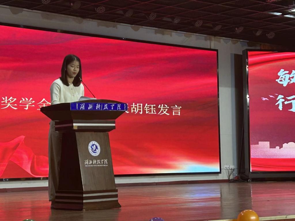 2023年度国家奖学金获得者胡钰同学分享了入学至今的成长经历和感受,呼吁同学们明确目标,培养积极的学习态度,敢于尝试,勇于进取,全面提升自己。先进班集体代表班长席玉馨分享了班级管理方法以及营造良好班风和学风的举措,同时也表达了对老师们的感激。