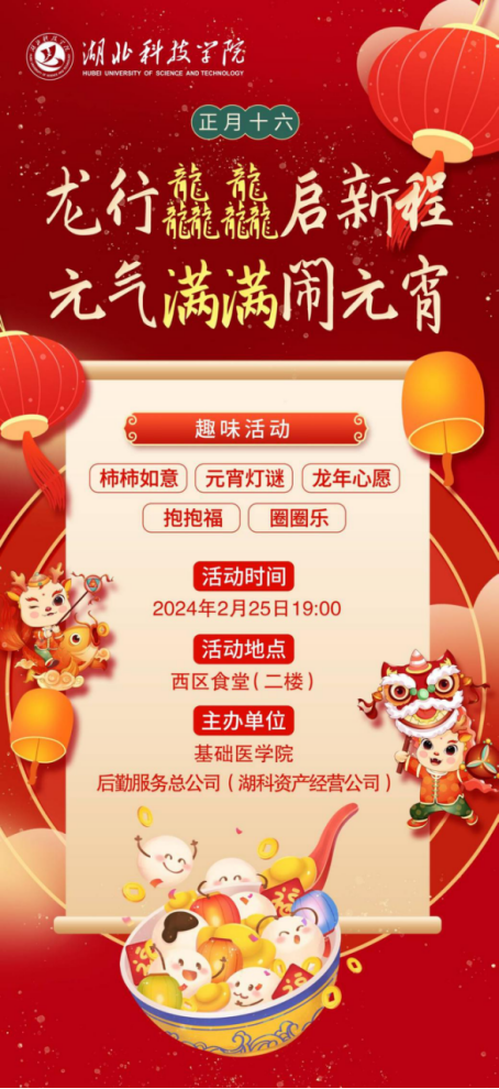 (通讯员:黄乔木,审稿人:佘同辉)时钟嘀嗒分分秒秒,光阴飞纵岁岁年年。为弘扬传统文化,增强班级凝聚力,2024年2月25日晚,williamhill中国在西区食堂二楼开展了“龙行龘龘启新程元气满满闹元宵”集体班会活动。后勤服务总公司(资产经营公司)党委书记徐胜利,学院院长蔡飞、党委副书记佘同辉,以及200余名师生共同参加。