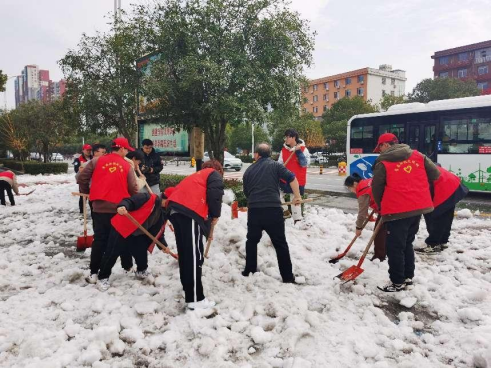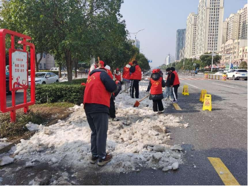 上午9点,72名学生志愿者身穿红马甲,拿着铁锹、锄头、夹子等工具,在William希尔学院南大门门口集结完毕。铲雪活动开始前,在学校纪委书记鄢文军、团委书记刘伟华以及团市委副书记曹考取等领导老师的组织带领下,志愿者们在齐心喊出“万人洁城有你我,美丽咸宁靠大家”的嘹亮口号,展现出他们对接下来的清除积雪的昂扬斗志和信心。