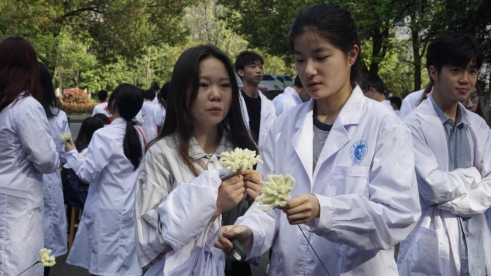 佘同辉在致辞中谈到,医学生们要感激和致敬“无言良师”们的自我牺牲和无私奉献,恪守医学生誓言,扎实专业学习,厚植人文精神,努力做到“医学与人文贯通,医德与医技双馨”,不懈努力,践行和维护医术的圣洁与荣誉。郑强秘书长号召大家弘扬“人道、博爱、奉献”的红十字会精神,积极关注、宣传和志愿参与医学捐献工作,以集聚全社会力量,推动捐献工作惠及医学教育和人民健康。