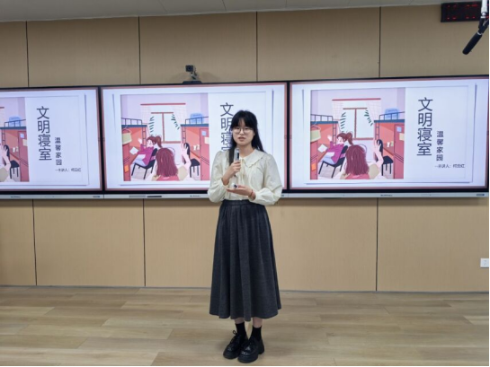 在展示环节,除独具匠心的布置外,各个寝室还展示了极具特色的个性化寝室公约。公约明确规定每晚固定时间为学习时间,大家一起研读医学经典;严格落实轮流打扫卫生制度,确保寝室整洁,以良好的环境迎接每一天的学习与生活;着重强调成员间沟通交流,分享学习心得,共同进步。这些公约全方位规范了寝室生活秩序,生动彰显了团队协作与文明共处的精神,更凸显了医学生在党的引领下,携手奋进的坚定信念。