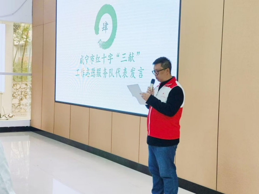 教师代表王柏军老师登台发言,他凭借深厚的专业素养,不仅为同学们深入浅出地传授专业知识,更从医者品德塑造的高度,为大家指明前行方向。紧接着,学生代表徐华天同学走上讲台,结合新时代青年的视角,分享了对生命价值和奉献精神的深刻思考与独特感悟,引发了同学们的强烈共鸣。随后,三献服务队代表高睿老师带来了一个个令人动容的真实故事,这些故事如同一股股暖流,传递出对生命的尊重与热爱,让在场师生深受触动。最后,红十字会会长郑强详细介绍了红十字会在公益领域的卓越贡献,并满怀热忱地号召同学们积极投身志愿服务,注重自身品德修养。这一呼吁如同一颗火种,瞬间点燃了同学们的热情,气氛热烈非凡。