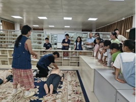 8月26日,30余名孩子分两批参与科普活动。首环节以趣味比喻科普基孔肯雅热预防,将病毒比作“微型轰炸机”、积水比作“空军基地”,让孩子快速掌握“清积水、防蚊虫”要点。CPR急救课变身“溺水救援”小剧场,孩子4人一组实操模拟人,在节拍声中学会急救技能。标本长廊里,3周大胚胎、透明如水晶的标本吸引孩子目光;VR体验让他们“走进”人体,体验“消化”“血管”之旅。活动设答题集章机制,孩子凭印章兑换“小小科学家”徽章,家长用镜头记录孩子的骄傲瞬间。