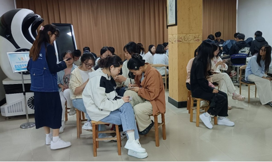活动伊始,主持人点明大学生在快节奏学习中常遇学业焦虑、人际困惑等问题,说明活动将通过多元环节帮助大家感悟生命、拥抱成长,快速拉近与同学的距离。“盲行与互助”感官模拟体验率先开启,在封闭教室内,同学们两两分组,蒙眼者在同伴引导下穿越桌椅、台阶等障碍。体验后,大家分享感受,有人谈及失视后的不安,也有人体会到同伴信任的温暖,既加深了对残障群体的理解,也懂得了信任的珍贵。