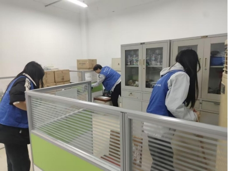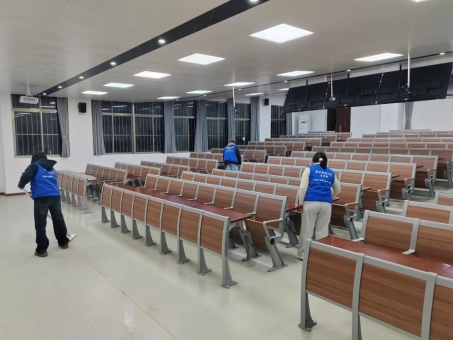 在教室中,志愿者们分工合作,认真擦拭门窗、黑板和课桌椅,清理抽屉内的杂物,拖洗地面,不放过任何一处卫生死角,让教室变得窗明几净。在会议室里,大家仔细整理桌面上的文件,擦拭办公设施,清理废弃杂物,为老师们营造出整洁舒适的工作环境。在实验室中,志愿者们严格按照要求,重点清扫实验台面、仪器设备、水槽以及角落,清理废弃物品,整理实验器材,确保实验室整洁规范。整个活动过程中,志愿者们不怕脏、不怕累,专注投入、任劳任怨,用行动展现出青年学子的责任与担当,成为学院里一道亮丽的青春风景线。