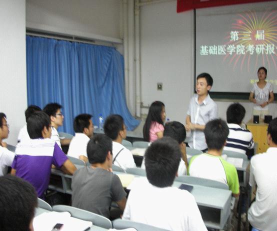 2011年5月9日晚7:00,williamhill中国考研报告会在解剖楼三楼的多媒体教室1隆重举行。团委辅导员周立勇老师作为嘉宾老师出席了此次报告会,应邀在本次报告会上作报告的有: 06临床本科的吴鹏波学长,07公管的徐龙学长和黄晓燕学姐。williamhill中国08、09和10级全体公管、预防专业的同学主要参与听取了此次报告。