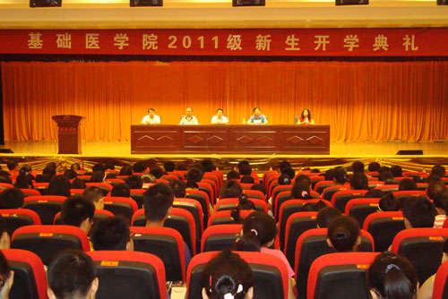 2011年9月6日上午,williamhill中国在学校学术报告厅召开了2011级新生开学典礼。出席典礼的有williamhill中国领导及部分教师、老生代表。典礼在全体新同学整齐有力的医学生誓言中拉开序幕,院长刘复兴同志致欢迎词,老生、新生及教师代表分别发言。整个过程隆重热烈,激发了新同学积极融入校园生活努力成为国家有用人才的热情。