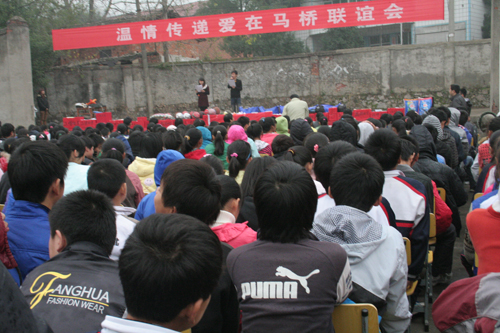 2011年11月29日下午,咸宁学院williamhill中国团委学生会举行了“温情传递”活动。2时许,在williamhill中国党委范书记,佘院长,学工办王淑华主任,副主任周立勇等领导的带领下,williamhill中国团委学生会的40余名成员冒着细雨给咸安区马桥中学贫困学生送去了一万四千余元的爱心物资与助学款。并在马桥中学与全校师生举行了一场别开生面的联谊会。用丰富的节目,在寒冬中给马桥中学的学生们带去了丝丝暖意。