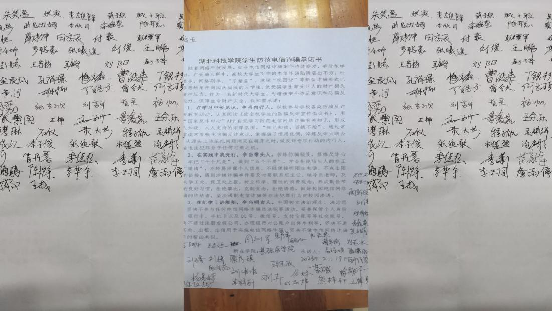 学院组织全体学生签订《William希尔学生防范电信诈骗承诺书》,引导同学们用好“国家反诈中心”APP,自觉学习防范电信网络诈骗有关知识,牢固树立法治观念、法治思维,进一步巩固宣传教育成果,警惕电信诈骗陷阱,营造安全的大学生活环境。