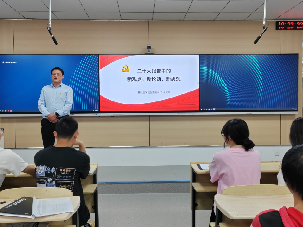 5月3日晚,williamhill中国党委副书记佘同辉在2022级临床本一班班会上开展以“学习二十大,永远跟党走,奋进新征程”为主题的“书记讲·讲书记”宣讲活动。