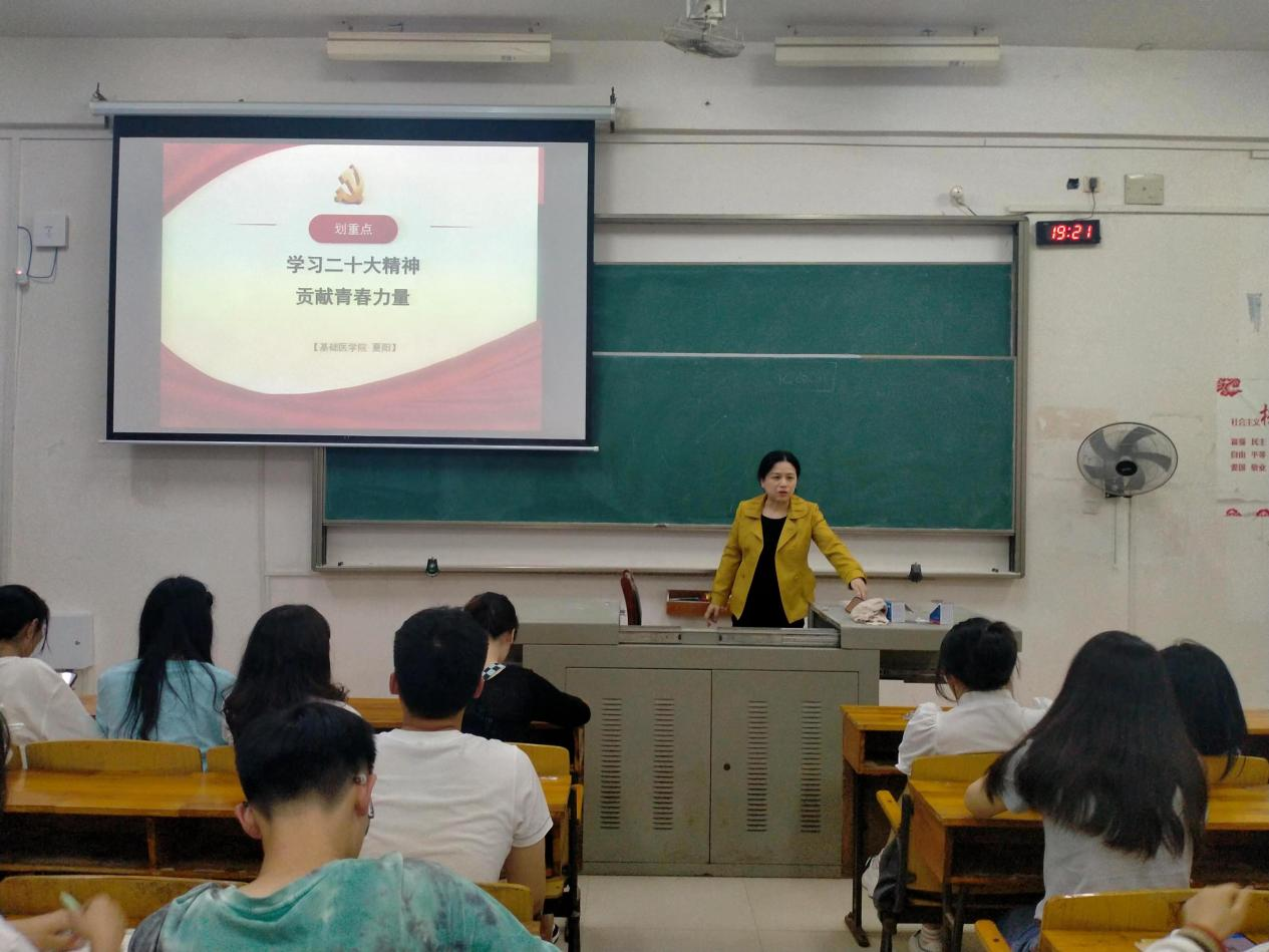 williamhill中国辅导员洪莹莹到22本5班开展党的二十大精神宣讲,洪莹莹指出,要深入学习贯彻习近平新时代中国特色社会主义思想,希望全体医学生凝聚发展医学的奋进力量,强化时代使命和责任担当。辅导员夏阳面向20临床本四班同学开展“学习二十大精神,贡献青春力量”主题宣讲活动。汪晓娟老师面向williamhill中国21级临床本三班全体同学开展了以“学习二十大精神,砥砺奋进新征程”为主题的的宣讲活动。