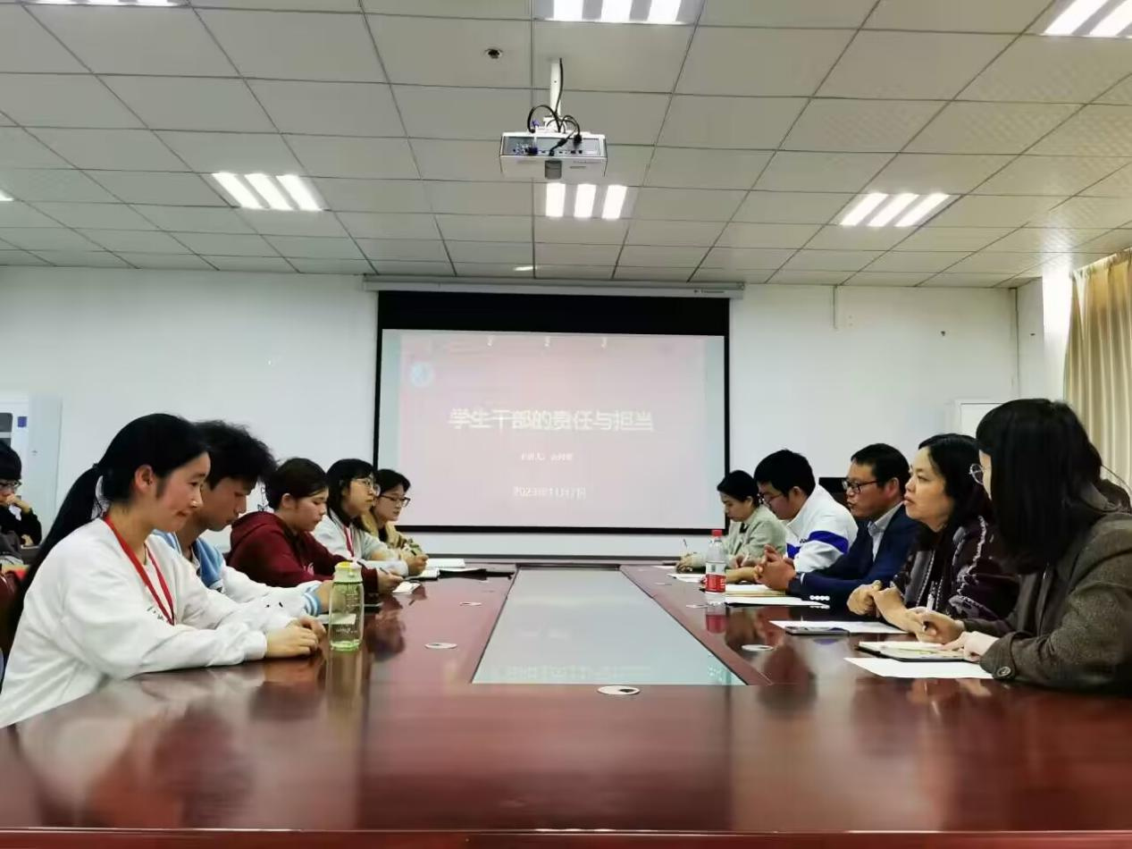 团委学生会主席团和各部门部长介绍情况后,佘同辉对参加好学校运动会谈了工作要求,并做了“学生干部的责任与担当”的专题培训。他提出,学院团委学生会干部应该具有较高的政治觉悟、思想品质和能力素质。一是要明确学生干部的群众性、先进性和原则性,坚持从同学中来、到同学中去,以身作则;二是要着力培养交流沟通能力、组织协调能力和创新实践能力,积极、主动、创造性地开展工作;三是要做好学风建设、创新实践、校园文化等方面的工作,营造良好育人氛围,打造学院活动品牌。