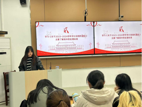 在班会伊始,学习委员逐一细致地向同学们解读了《2019版临床医学本科专业课程计划表》、《关于2023-2024学年学分清理的通知》以及《William希尔授予学士学位实施细则(修正版)》等关键文件,有助于同学们清晰地掌握未来应修的课程科目情况,特别是对学分清理的处理标准和不授予学士学位的情况有了明确的认识。