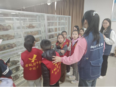 我校生命科学标本陈列馆馆藏丰富,种类多样,为孩子们提供了一个全面了解人体内部奥秘的平台。讲解员耐心细致,不仅带领孩子们参观了各类标本展区,还亲自取出部分标本进行展示,让孩子们能够更直观地感受生命的奇妙。小朋友们充满好奇,踊跃提问,展现出对生命科学的浓厚兴趣。