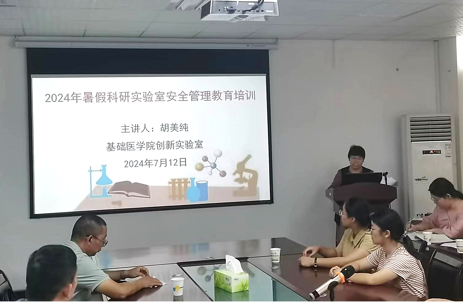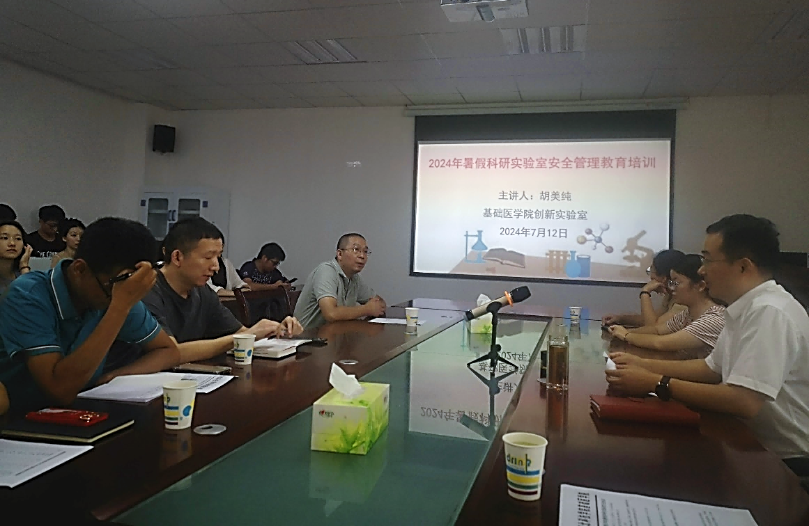 (通讯员:胡美纯;审核:蔡飞)为进一步巩固我院2024年暑假工作全盘部署,强化安全意识,提高科研效率,着力加强人才培养质量及学科建设水平,2024年7月12日下午,williamhill中国硕士研究生导师、全体在读研究生及暑假期间在创新实验室开展科研实践活动的本科生们汇聚基础医学创新实验室六楼会议室参加“2024年暑假科研实验室安全管理教育活动”。会议由williamhill中国院长蔡飞教授主持。