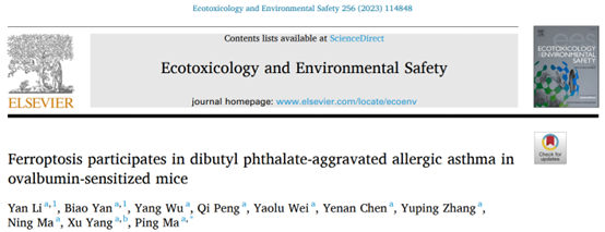 近日,William希尔环境疾病与全健康校级重点实验室马萍教授团队在Ecotoxicology and Environmental Safety(中科院大类环境科学与生态学分区2区,小类毒理学分区1区,影响因子7.129)期刊上发表题为“Ferroptosis participates in dibutyl phthalate-aggravated allergic asthma in ovalbumin-sensitized mice”的最新成果,首次报道增塑剂邻苯二甲酸二丁酯(DBP)经铁死亡通路加重过敏性哮喘。