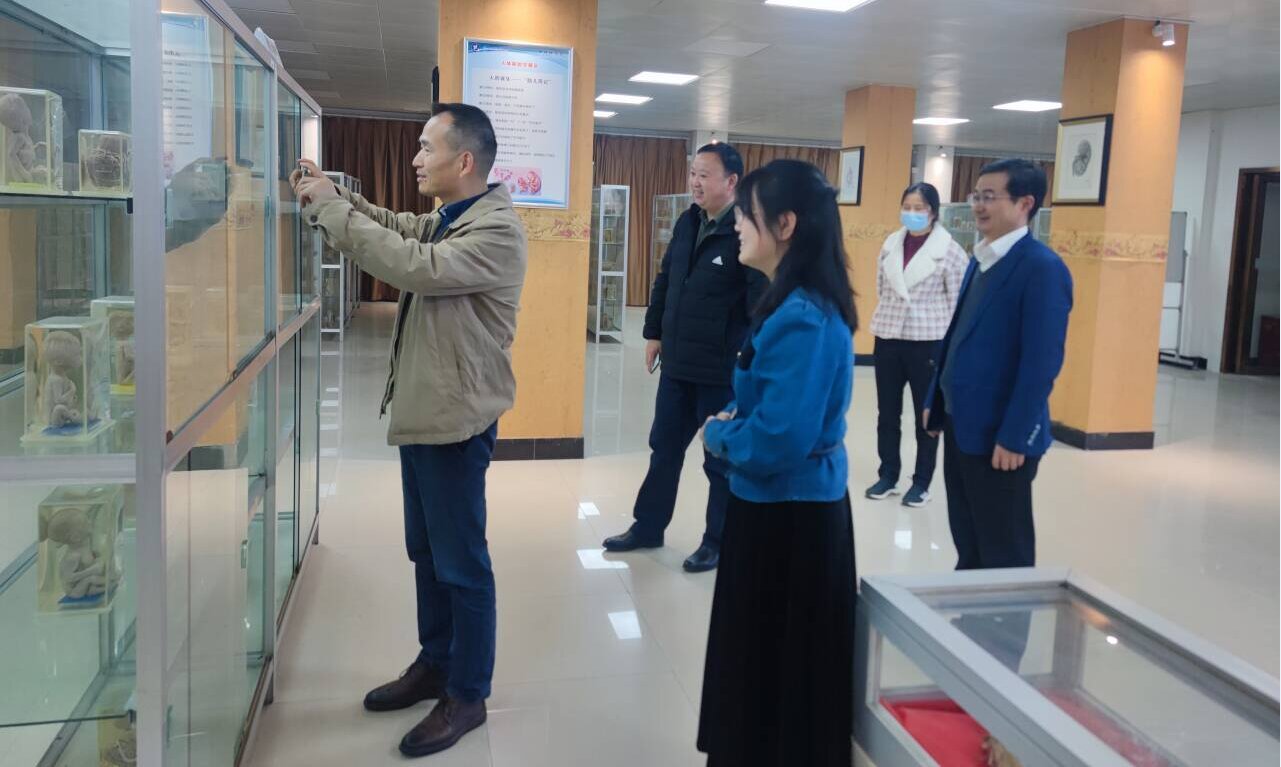梅燕向柯教授详细介绍了标本馆的发展历程、馆内珍藏和获奖展品。柯教授心潮澎湃地回顾,自1999年咸宁医学院毕业后首次回母校,在母校标本馆内领略到了众多珍稀且制作精美的生物标本,深感震撼,这些珍稀的标本不仅是传承医学知识的载体,更承载了历史与文化的记忆。他感叹母校的变好变强,也充分肯定了老师们的辛勤付出和无私奉献,铸就了眼前这么多珍贵的标本。