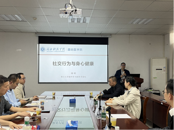 (通讯员刘玲审稿蔡飞)为深化科研交流,拓宽我院师生的科研视野,2024年11月14日下午,浙江大学求是特聘教授、博士生导师、国家杰出青年基金获得者、国家高层次青年人才计划入选者、浙江省杰出青年基金获得者、国家卫健委医学神经生物学重点实验室副主任徐晗教授应邀为我院师生作了题为《社交行为与身心健康》的学术报告。williamhill中国青年科研骨干及全体硕士研究生参加讲座,讲座由院长蔡飞主持。