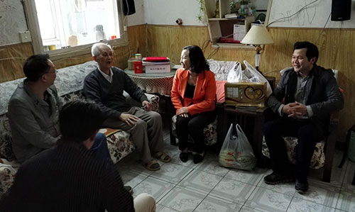 九十多岁高龄的孔教授身体还很硬朗,思路清晰,谈到曾经的同事与学生,老教授总能露出开怀的笑容,对年轻的日子充满了美好的回忆。在亲切地交谈问候中,孔教授对学校的快速发展感到由衷的高兴,对组织上的关怀表示感谢。领导们对孔教授多年来为学校的建设和发展做出的贡献表示衷心的感谢,一再叮嘱孔教授要多保重身体,并希望安排党员志愿者去家中服务,帮他做做家务,购买生活物品和药品,但老教授谢绝了领导们的好意。他说,目前生活上还能够自理,虽然儿子不在身边,但孙子经常来照顾生活起居。大家工作和学习都很忙,如果有需要,他会找组织帮忙的。临别时,领导们祝福孔教授身体健康、生活幸福。