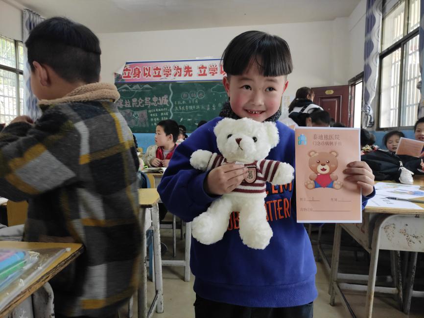 学生志愿者们首先向小学生们讲解了有关心理健康教育类知识,随后开展“泰迪熊医院”活动,通过模拟小熊生病,以孩子扮演家长带着小熊看病或者扮演医生为小患者治病的形式,以寓教于乐的方式让小朋友们体验和熟悉就医流程,减少其对医务人员以及就医的恐惧。志愿者们还给孩子们送上了精心准备的图书和文具,陪孩子们一起看书,耐心解答孩子们提出的所有问题。