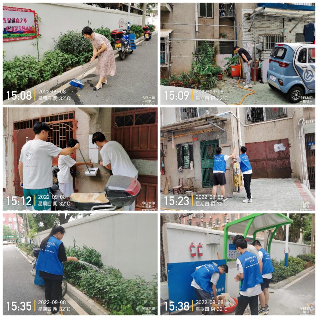 活动中,师生们携带打扫工具,劳动热情高涨,清扫了小区路面、花坛等区域的垃圾,主动捡拾烟头,清理卫生死角,铲除张贴的小广告。因持续高温少雨,小区绿植出现枯萎现象,志愿者们撸起袖子、拿起水管和水桶,为小区内的花草树木浇水,浇灌后的绿植呈现出一派生机勃勃的景象。尽管天气较炎热,但是大家依旧认真清扫,充分发扬了不怕脏、不怕苦、不怕累的志愿精神,以实际行动展示出我院师生的良好精神风貌。经过一个多小时的辛勤劳动,国安小区环境面貌焕然一新、整洁靓丽。