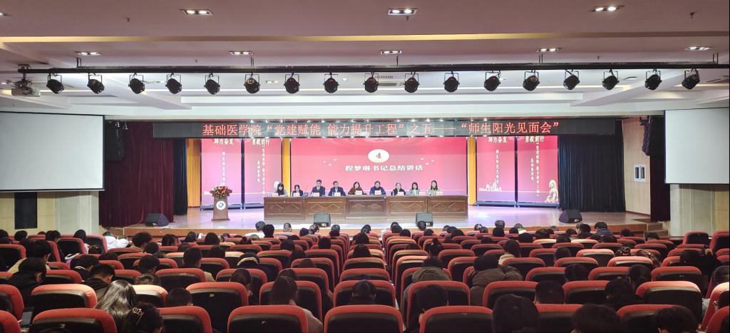 3月23日晚,williamhill中国举办“党建赋能 能力提升工程”师生阳光见面会。院党委书记程梦琳,副书记佘同辉,教师代表武阳、朱薿、刘婷婷,全体辅导员、部分班主任和200多名学生干部参加了见面会。活动由副书记佘同辉主持。